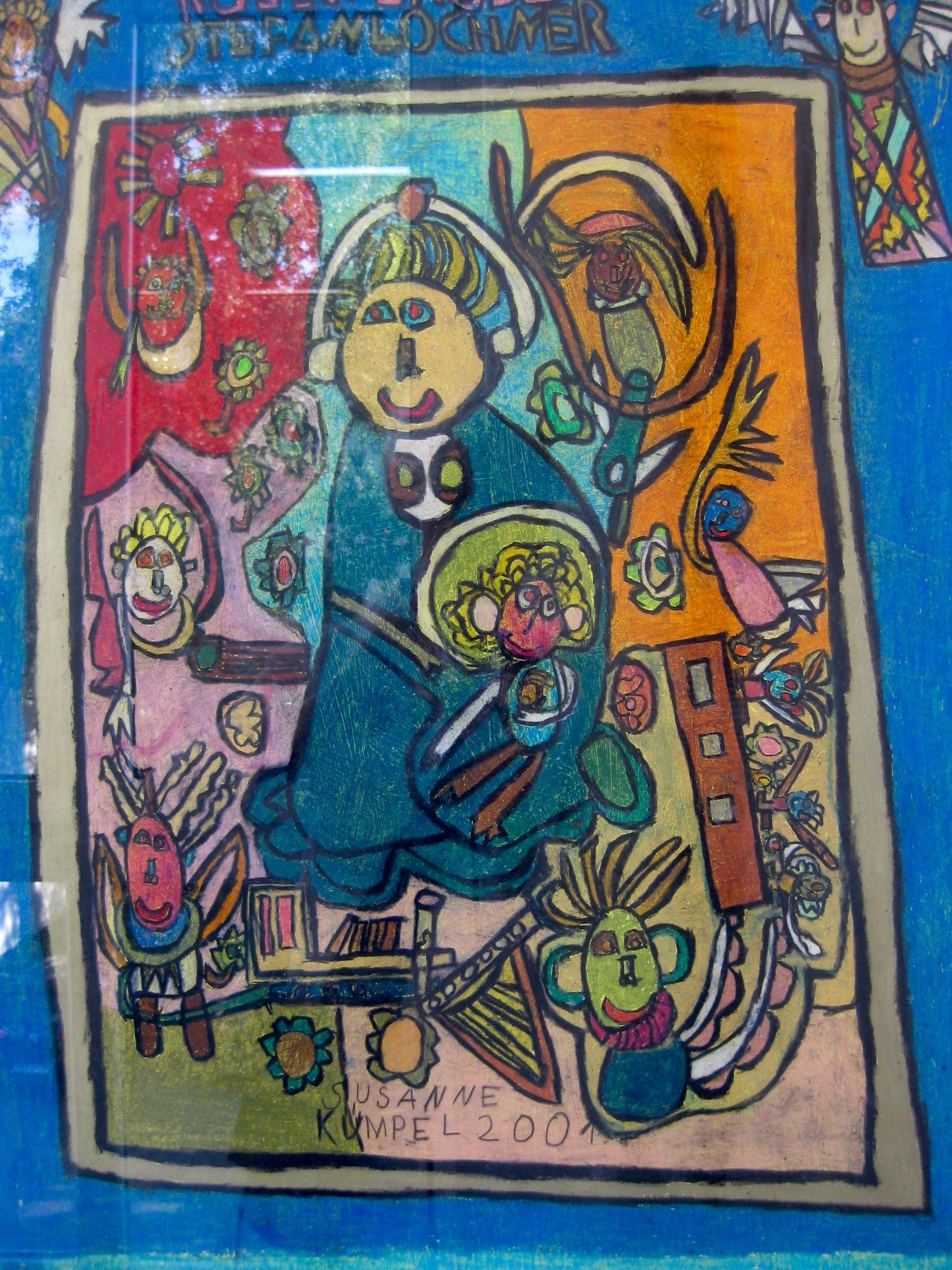 Die beiden Engel mit dem B davor zu Füßen von Raffaels „Sixtinischer Madonna“ sind noch kecker geworden. Richtig freche Schlingel, lugen sie unter ihren wilden Haarschöpfen scheinheilig gen Himmel, dabei haben sie’s faustdick hinter den Ohren. Die beiden Kerlchen von Volker Darnedde bilden den Auftakt zur aktuellen Ausstellung der Galerie „Geyso20“ der Lebenshilfe. „Gleich aber anders. Kunst im Blick der Outsider Art“ stellt Arbeiten von 13 Künstlerinnen und Künstlern mit geistiger Beeinträchtigung vor, die in Malerei und Zeichnung nach großen Vorbildern aus der Kunstgeschichte, vom Mittelalter bis zur Moderne, entstanden sind. Dabei handelt es sich keineswegs um simple Kopien, sondern um sehr eigenständige, originelle Aneignungen der bekannten Vorlagen.